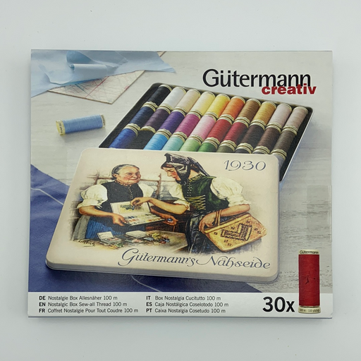 Vollständige Details anzeigenGütermann Allesnäher 30x100m, Stärke 100, Nostalgie Box