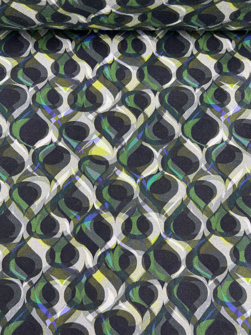 Vollständige Details anzeigen0,5 m Baumwoll-Stretch gemustert grün „Pfauenauge“