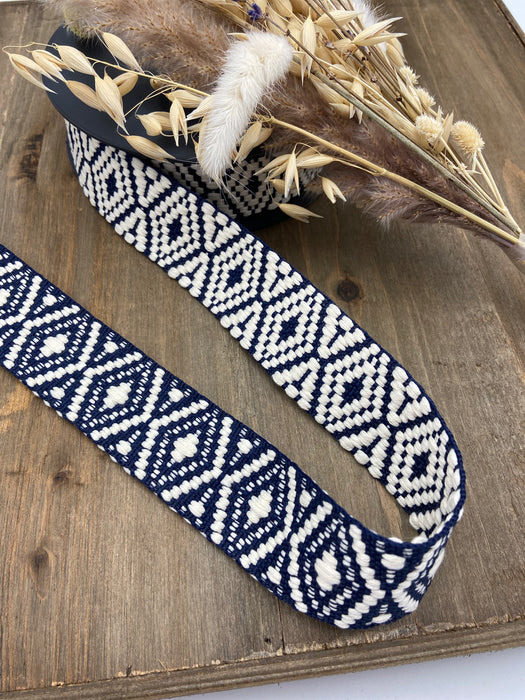 0,5 m Gurtband gemustert Blau/Ecru 3,8 cm
